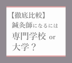 鍼灸師の学校 【徹底比較】鍼灸師になるには専門学校 or 大学? 2025.10.10 鍼灸師は、鍼や灸を用いて身体のバランスを整え、痛みや不調を改善する専門家です。「鍼灸師になるには専門学校と大学、どちらに進学すればいい?」「それぞれの違いは何?」そんな疑問をお持ちの方へ、この記事では鍼灸師になるための2つの選択肢、専門学校と大学を徹底比較し、それぞれのメリット・デメリットを詳しくご紹介します。この記事を読むことで、将来の目標に向かって一歩踏… more